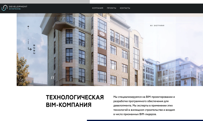 сайтов на рынке BIM-компаний. На мой взгляд, у него действительно крутой дизайн – в стиле «швейцарского киберпанка», гиперсовременный. И в то же время удалось сделать сайт простым, лаконичным и доступным. Мне нравится цветовая гамма: сайт «бирюзовый», можно сказать, и в прямом, и в переносном смысле.