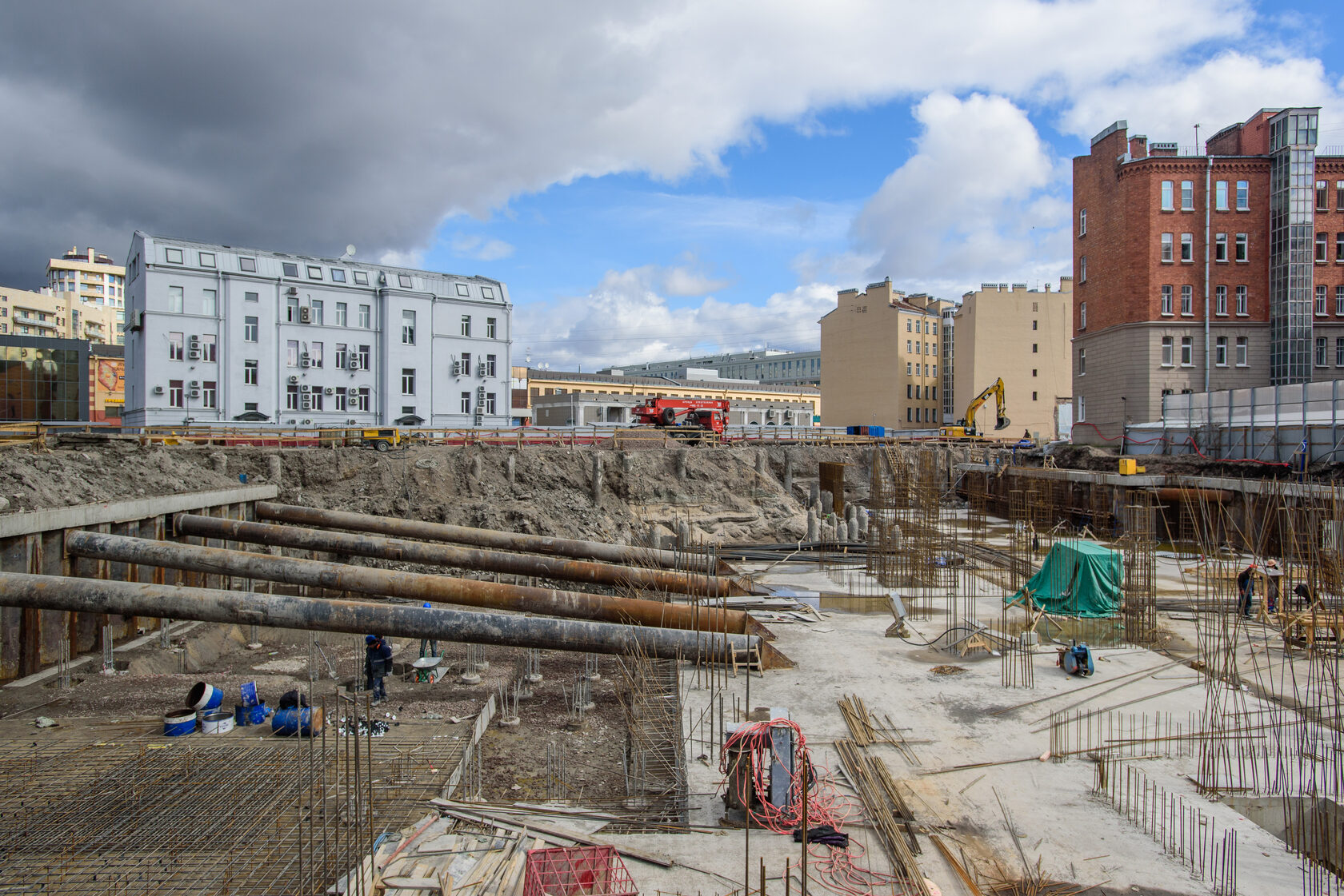 Когда строишь в центре, где соседние дома часто оказываются на расстоянии буквально вытянутой руки, одна из самых сложных задач – не допустить их повреждения. Это мы все прекрасно знаем. Иначе стройку вообще могут на какое-то время остановить! И особенно внимательными нужно быть, пока идёт нулевой цикл, – когда работы «в земле». Не случайно на стройке Futurist нам пришлось, например, частично использовать импортный шпунт.